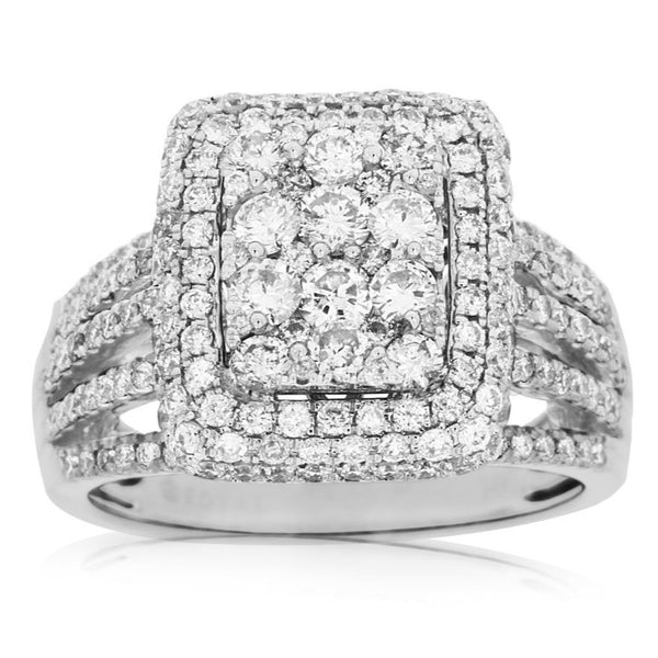 14k White Gold Diamond Cluster Ring With Diamond Halo & Diamond Shank (1.85ct) - WC7874D